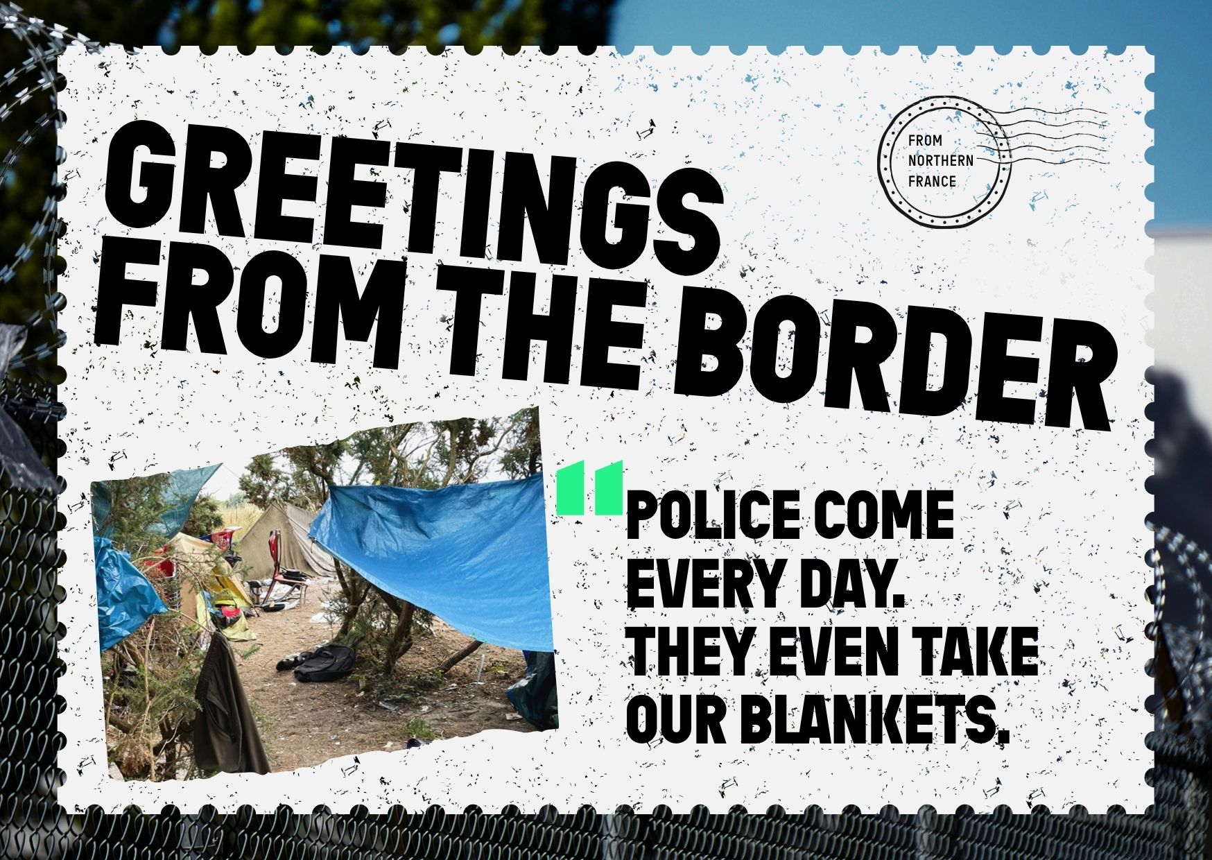 Our postcards contain our brand new report, full of real evidence and stories our researchers have collected from the UK and French border.